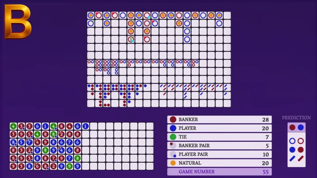 Scoreboards and roadmaps display previous Banker and Player results. While these tools help track session flow, they should not be treated as predictive systems.